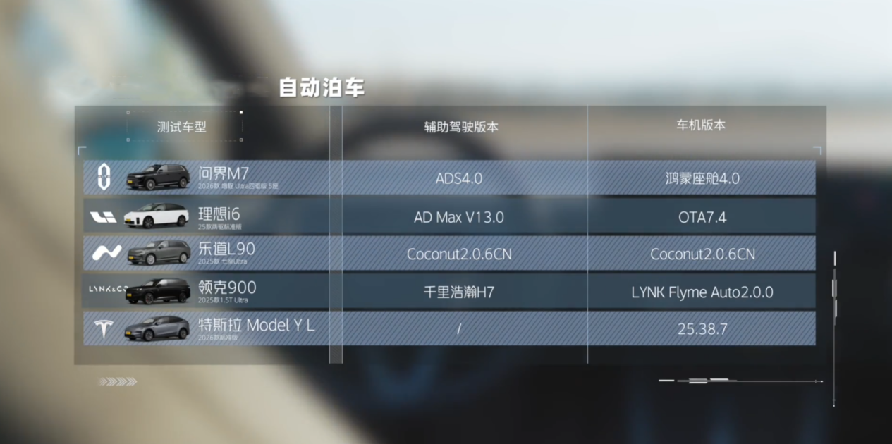 至于断头路自动泊车测试,看似简单,其实很能反应一家车企的辅助驾驶能力。意外的是,“遥遥领先”的问界M7竟然也有卡壳的时候。