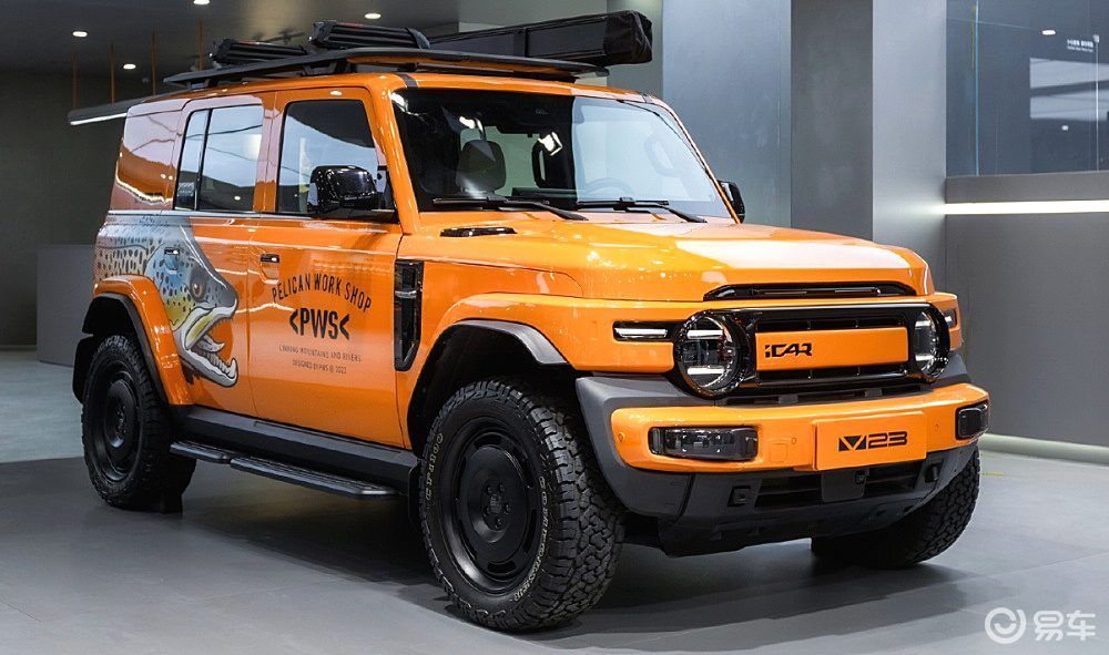 奇瑞iCAR V23采用复古硬派的方盒子造型,封闭式格栅与圆形LED大灯搭配,强化了硬派属性。宽体高姿态搭配19英寸轮毂与255mm宽胎,视觉张力十足。外露式四角透明毫米波雷达罩与隐藏式门把手形成现代科技与复古风格的碰撞,提供黑、白、绿等6种车身配色,满足个性化需求。