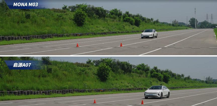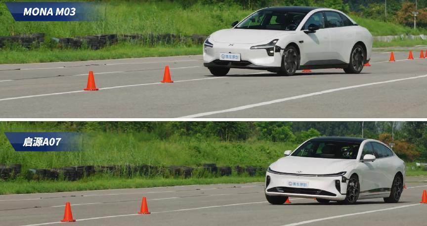 小鹏MONA M03以73.6km/h的成绩取得第二名,这让我们很出乎意料,它采用的是前麦弗逊,后扭力梁非独立悬挂,这种后悬挂并不利于操控,但是,由于其车身较小,整备质量更轻,给操控加了不少分,在麋鹿测试中的表现可圈可点。长安启源A07是前麦弗逊后H臂独立悬挂,悬挂调校侧重舒适,虽然H臂悬挂对抑制横向的动量有着先天优势,但此次麋鹿测试中,其车身晃动幅度反而要大一些,这可能和其较大的车长、整备质量以及驱动形式有关,所以最终以71.1km/h的成绩位列第三名。