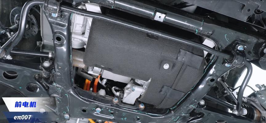 电机冷却方式为水冷,电机隔音包裹很到位,就像给两个电机建立了独立隔音房,噪音不会影响到车内乘员的舒适性。
