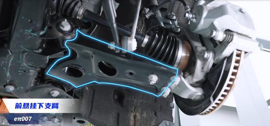 东风奕派eπ007采用六点硬连接全框式结构工艺,车身扭转刚度更强,三角臂材质采用双层冲压钢板+打孔减重,这样的好处就是刚性与轻量化的平衡。前后转向节都采用铝合金材质,进一步降低簧下质量,这一套组合拳下来,让东风奕派eπ007的操控极限更高,操控质感也更好。轮速传感器同样采用磁性封闭式传感器,适应更多复杂环境。