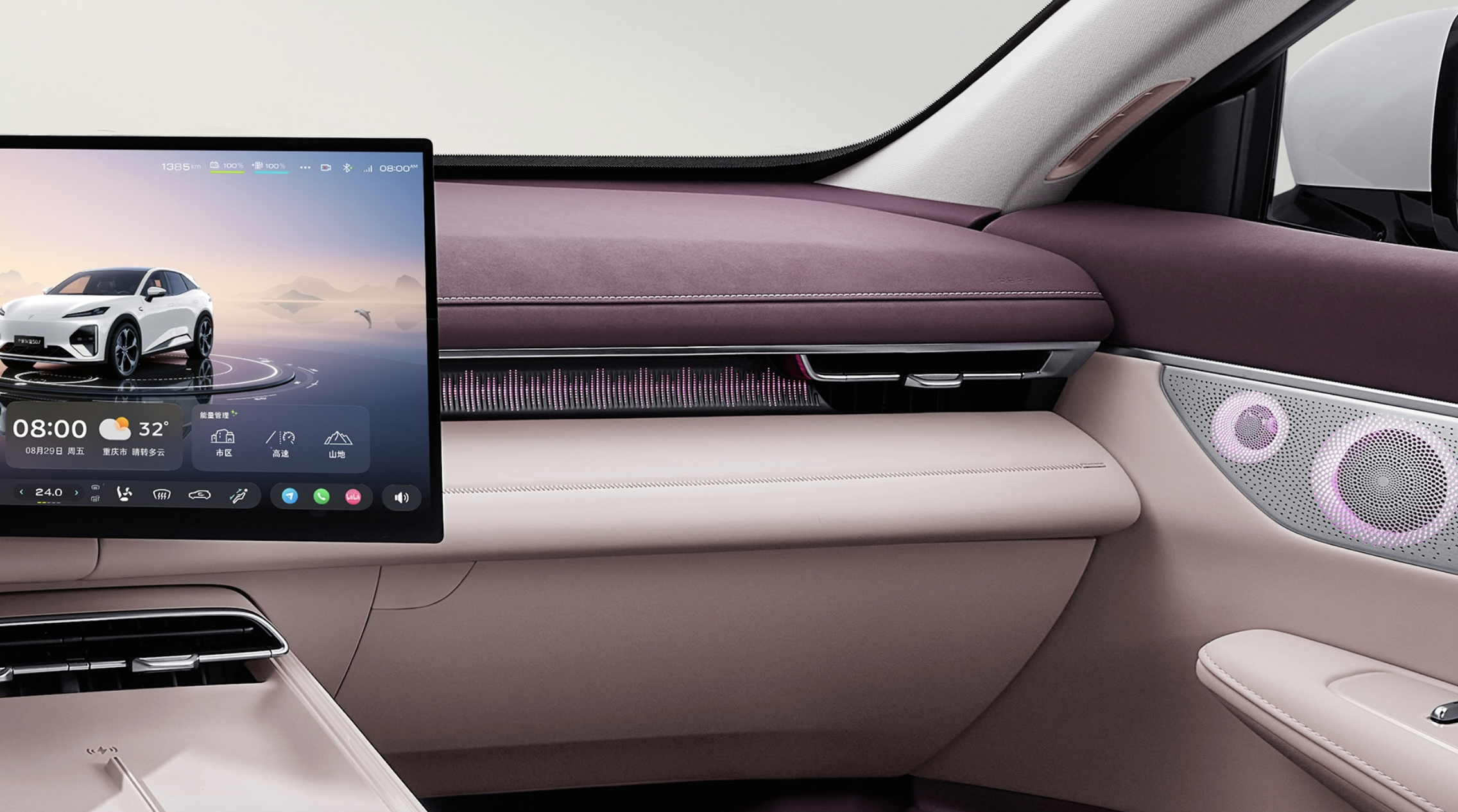 全新深蓝S07配备了20个扬声器,总功率2232W,7.3.4立体全景声声道音源布局带来专业级音效享受,并且还有杜比全景声完美适配QQ音乐、爱奇艺、哔哩哔哩等主流平台的杜比资源,不论是无损音乐还是电影大片,都有着身临其境般的影音效果。