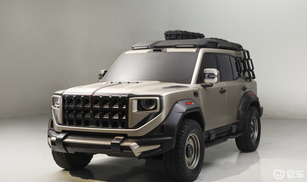 作为参考,整体来看,新车的外观造型还是比较硬朗个性的,据说前脸的造型设计灵感,源自于古建筑中的榫卯元素,突出的黑色轮眉、专业的越野轮胎等等。