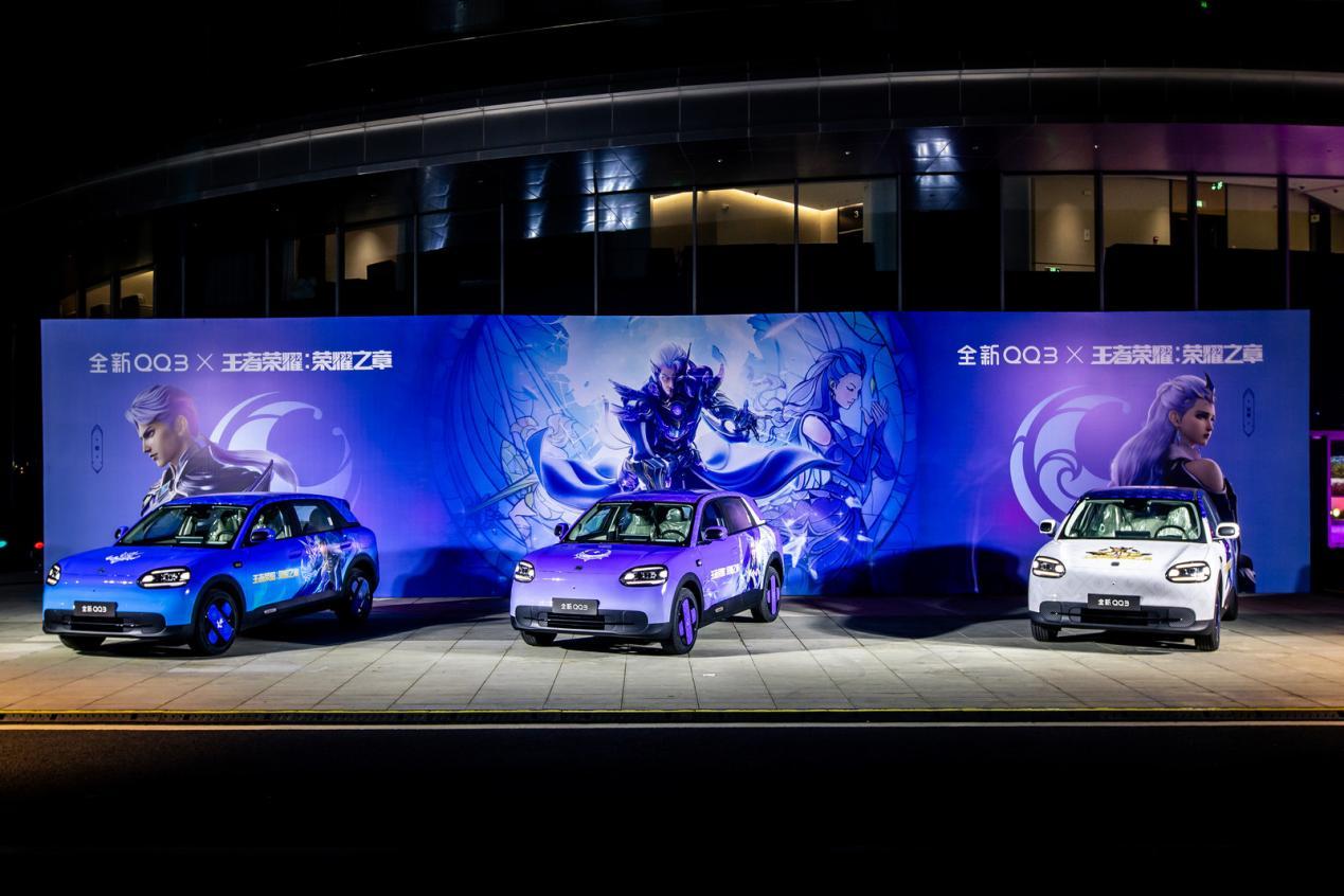 发布会的最高潮,来自跨界IP的联动。当《王者荣耀·荣耀之章》的人气IP角色穿越次元壁出现在舞台上时,现场年轻粉丝的欢呼声几乎掀翻屋顶。奇瑞汽车在现场首次展示了全新QQ3 ×《王者荣耀》联名车衣。这款车衣将游戏中的经典峡谷元素与QQ的Q萌造型完美融合,标志着QQ3不仅仅是一台代步工具,更是年轻消费者社交属性的“快乐搭子” 。