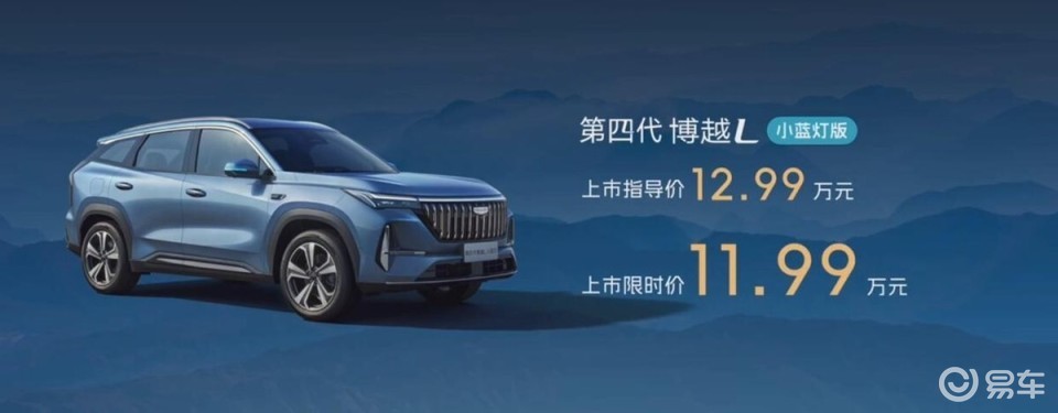 4月3日,第四代博越L的补充版本车型,小蓝灯版上市,指导价12.99万,限时售价11.99万,并且还有6重礼遇,比如现金补贴、高级NOA功能以及金融礼和焕新礼,还有流量礼和感恩礼等,推出了全新的车色,适用于全系车型免费选择。