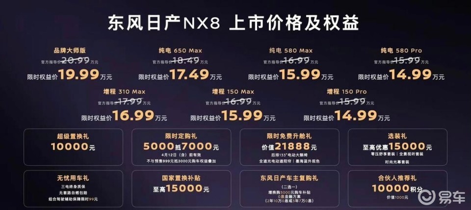 4月8日已经正式上市,限时权益售价14.99-19.99万,合资车身份下探到15万以下,还是有明显的优势。