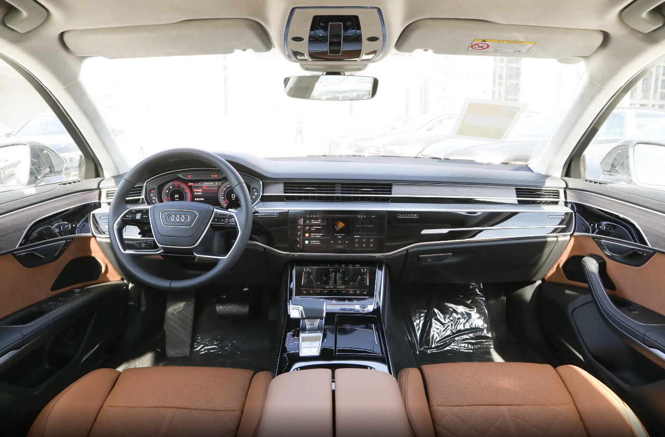 奥迪A8L则通过三块液晶屏构建出科技感的座舱氛围,同时座舱整体采用T型结构设计,台面阶梯式的轮廓配上烤漆和木纹饰板,拥有了雕塑般的立体美感。10.1英寸中控屏主要负责娱乐系统及车辆设置,8.6英寸下屏则负责空调、座椅调节和手写板功能,操作时还提供震动反馈。车机内的Asterix系统至2.0版本,并升级至8150芯片,操作流畅度和响应速度有所提升。