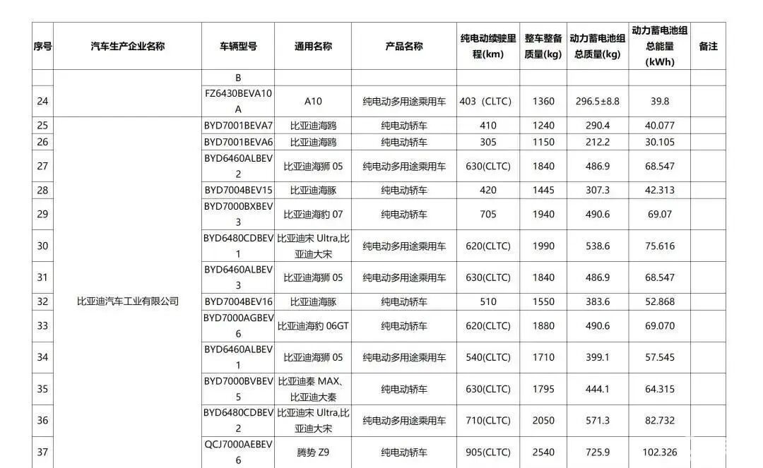除了腾势Z9系列,比亚迪此次还一口气申报了海鸥、海狮05、海豚、海豹07、宋Ultr、海豹06GT、秦MAX、领汇等多款车型,均成功进入减免购置税目录,这些车型的核心亮点之一,便是纯电续航的全面提升。
