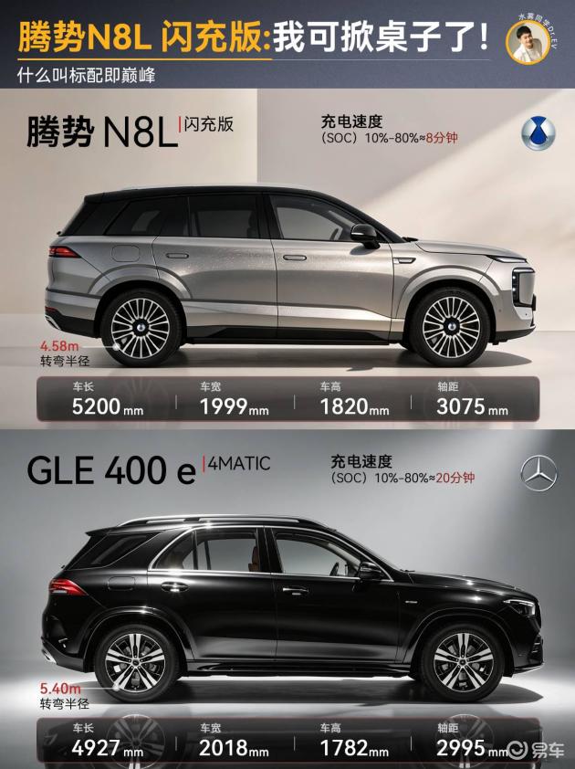 腾势 N8L 闪充版与奔驰 GLE 400 e 4MATIC,您会如何选择? 一边是传统豪华的典范,一边是新能源时代对豪华的全新诠释。