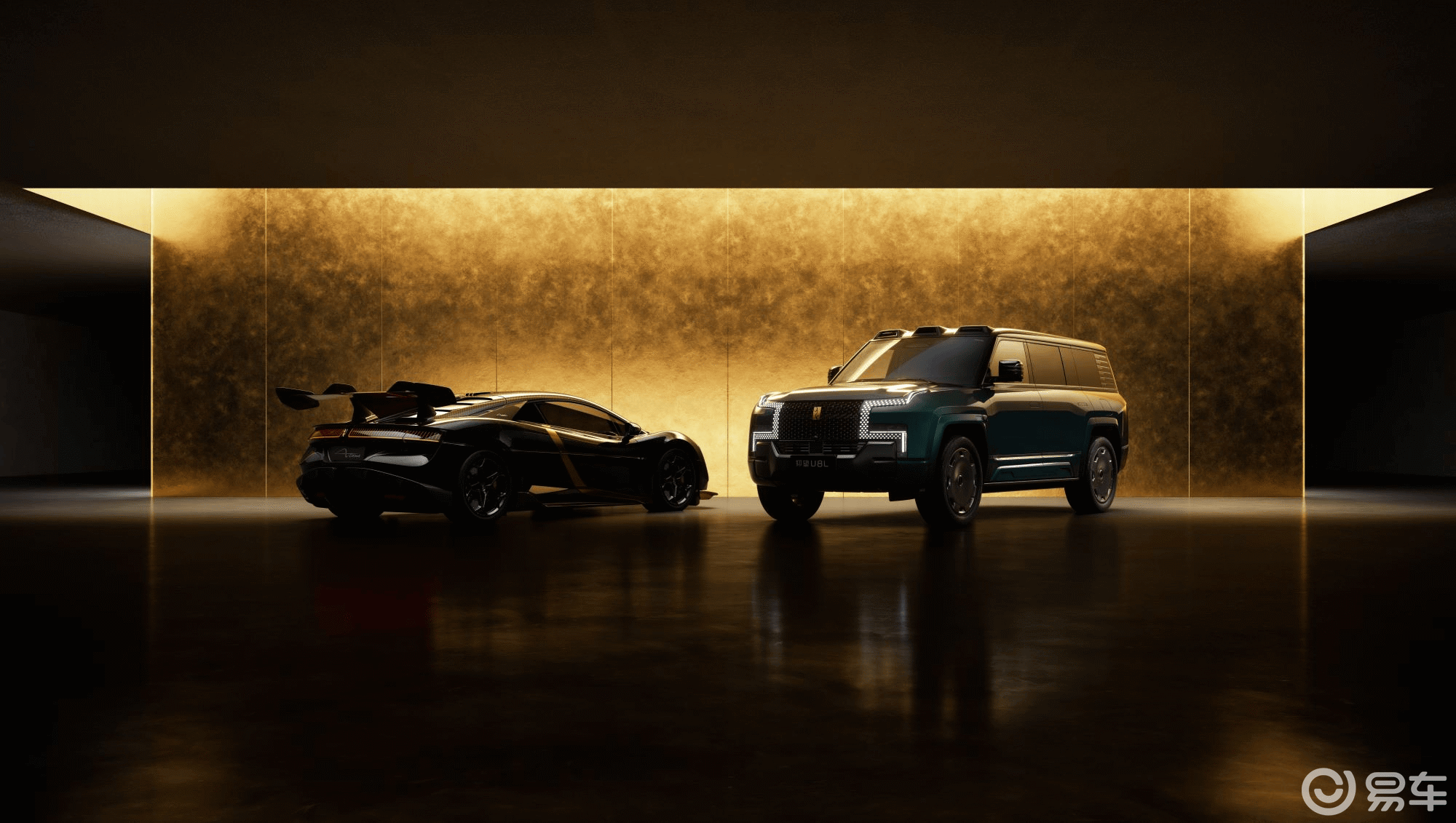 再看U8L鼎藏版。墨玉青车色,微米级珠光晶体,光线变化中呈现玉石般的渐变温润。甲骨文黄金车标、22英寸锻造轮毂——"金玉相逢,行稳致远",八个字把东方商务美学说透了。